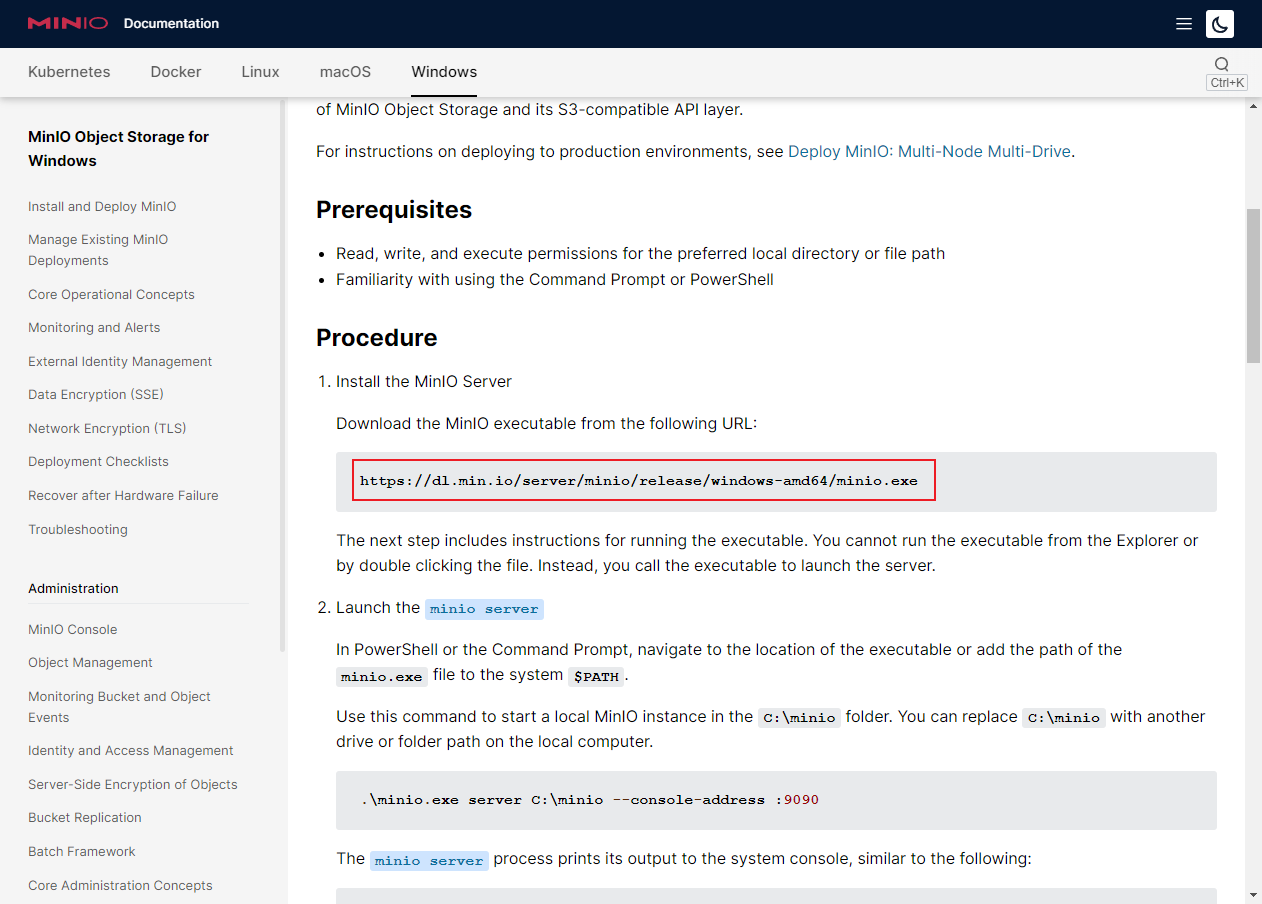 - 下载MinIO在Windows下的安装包,下载地址:https://dl.min.io/server/minio/release/windows-amd64/minio.exe
