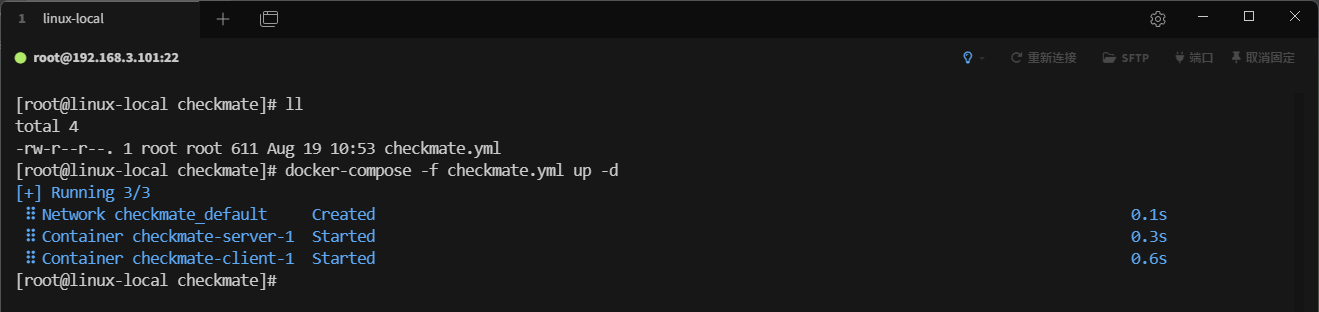 docker-compose -f checkmate.yml up -d来运行脚本;