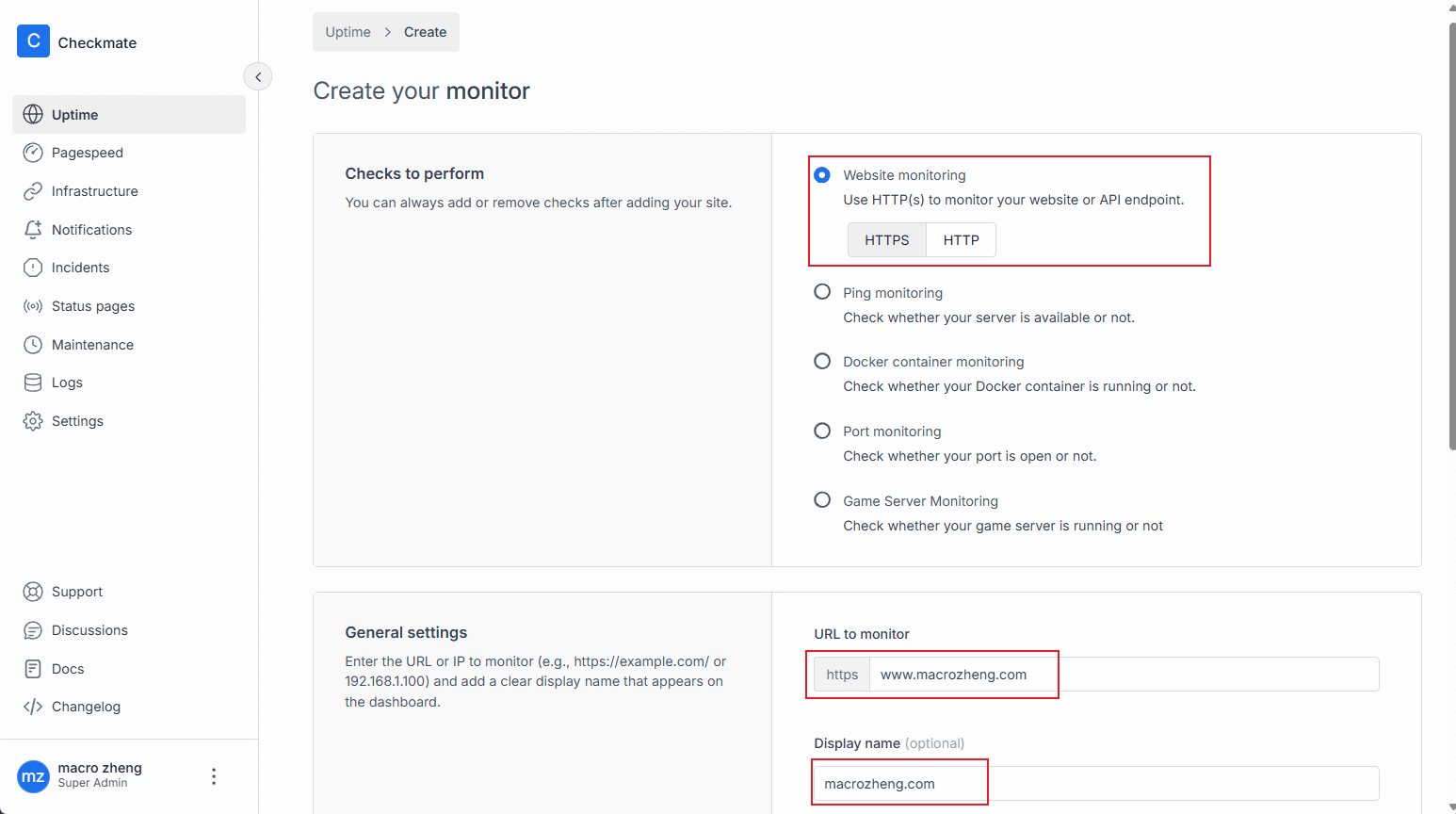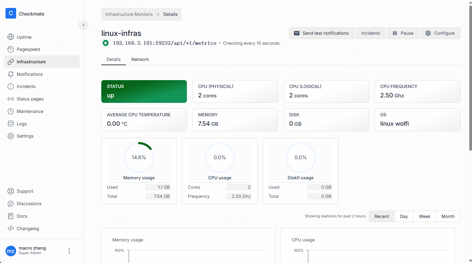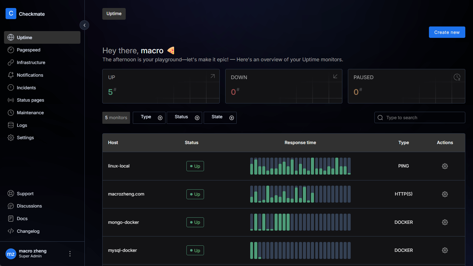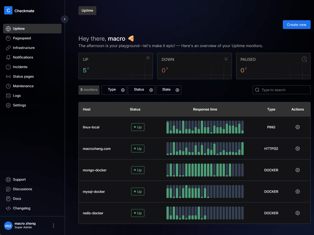 接下来讲解下Checkmate的基本使用,涵盖网站监控、服务器监控、Docker监控及硬件监控。