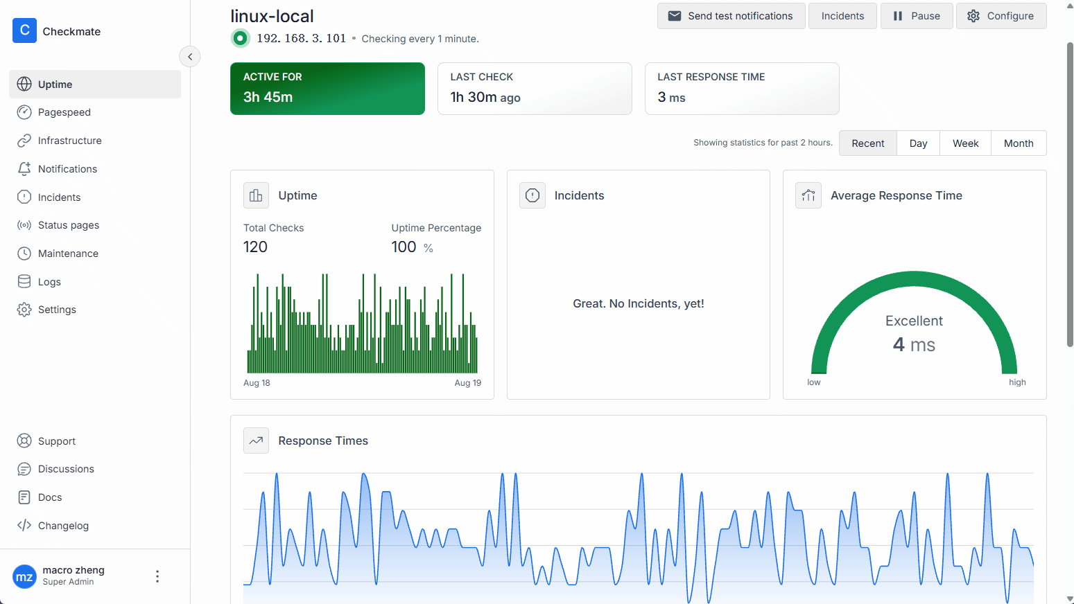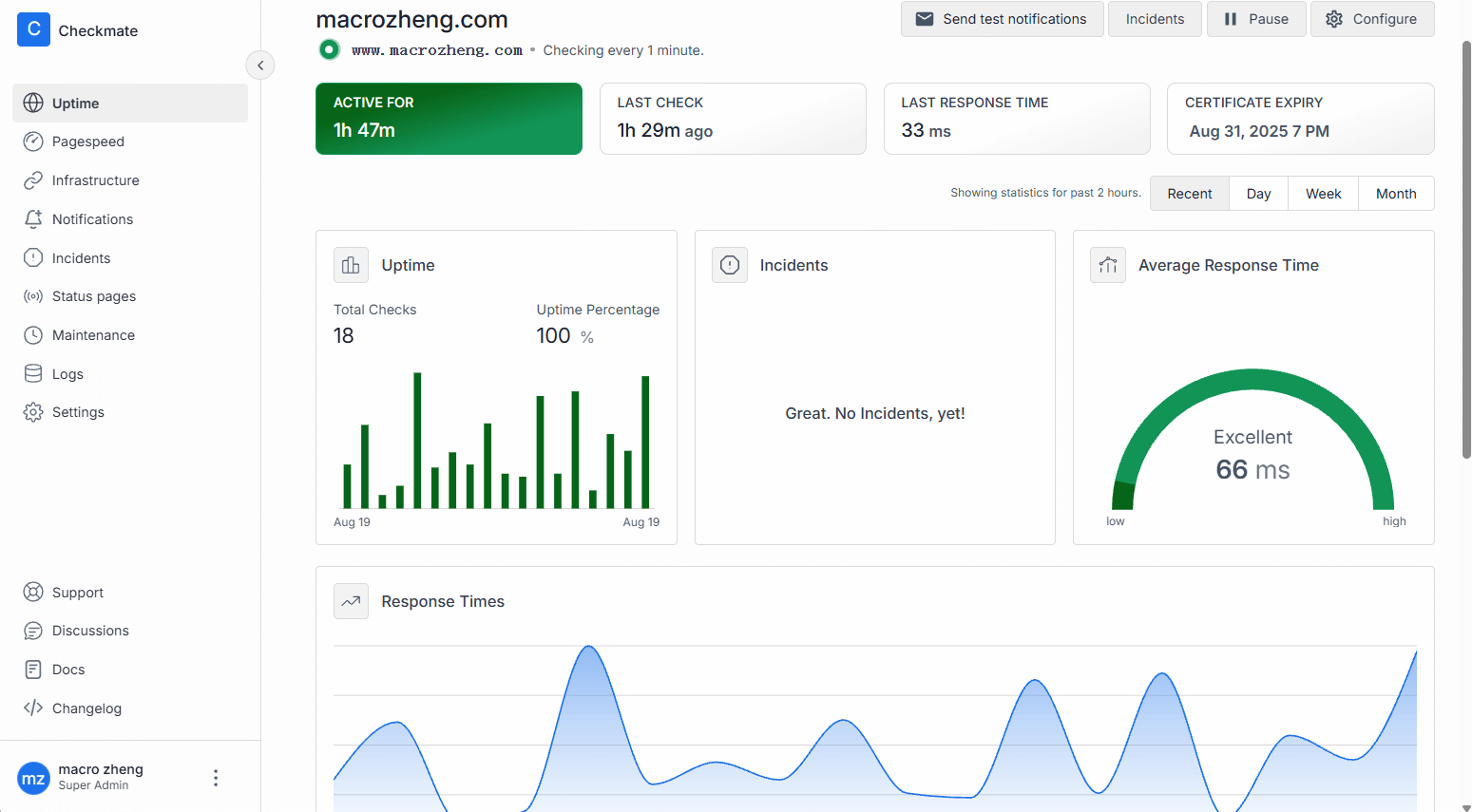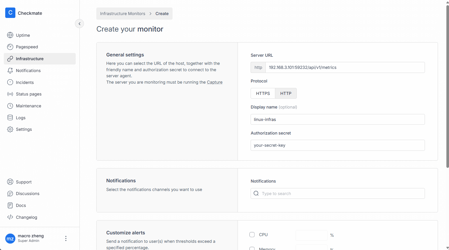 接下来讲解下Checkmate的基本使用,涵盖网站监控、服务器监控、Docker监控及硬件监控。