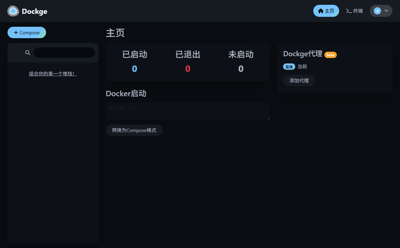 下面是Dockge使用过程中的效果图,界面还是挺炫酷的!
