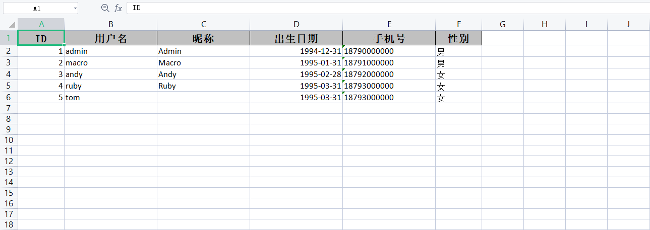 我们以会员信息的导出为例,来体验下EasyExcel的导出功能。