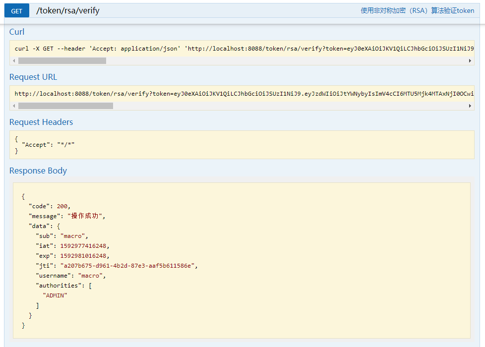 - 调用使用RSA算法解析JWT令牌的接口进行测试。