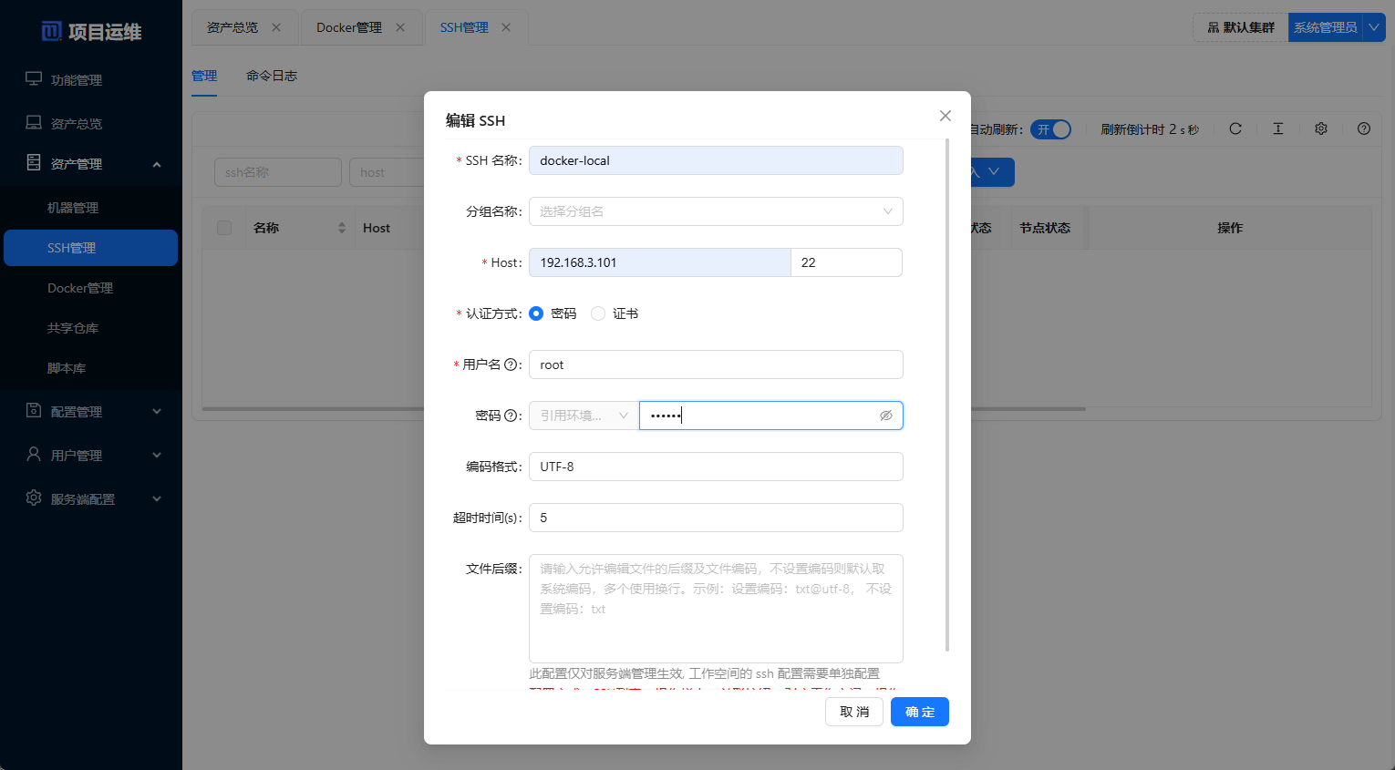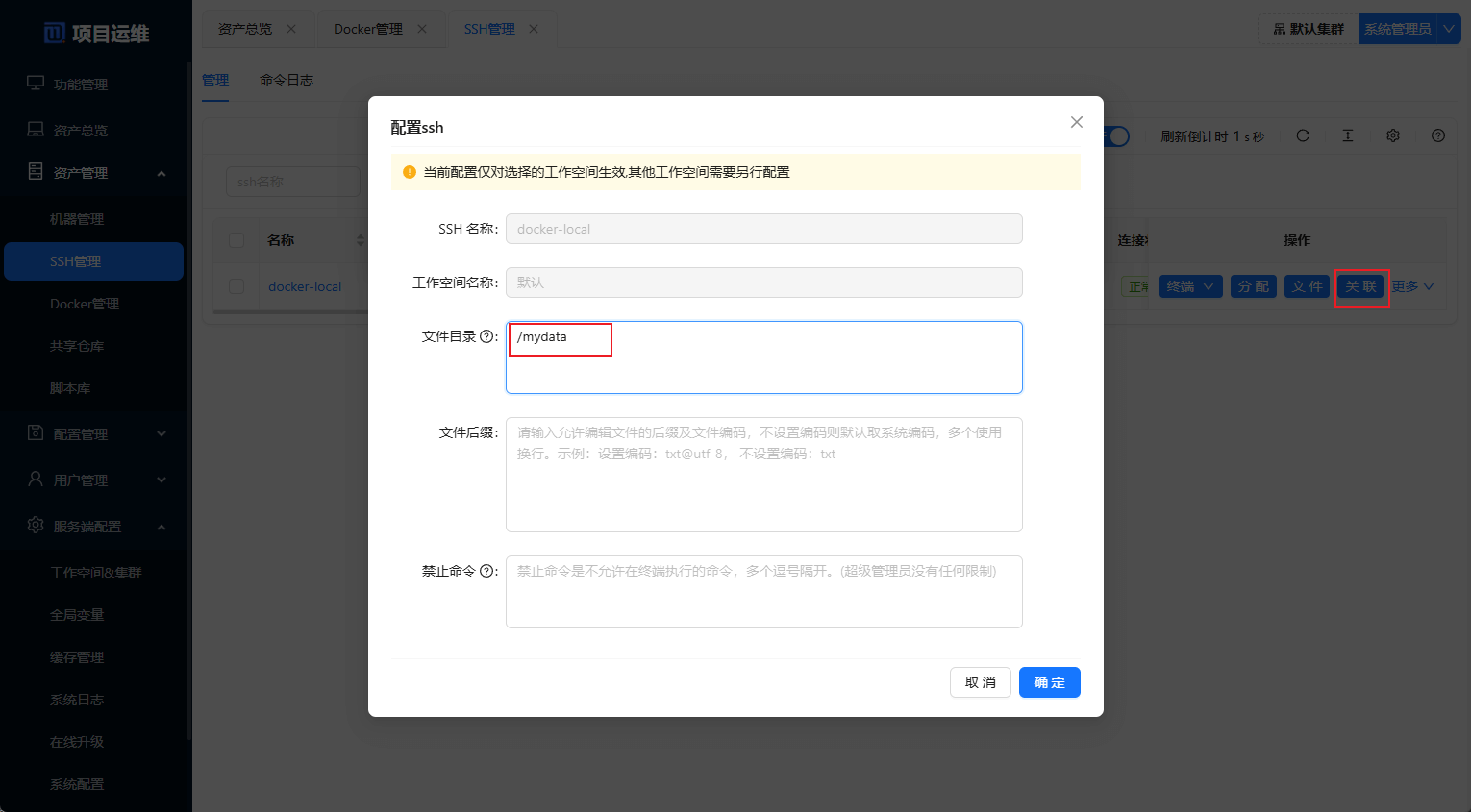 SSH管理中添加SSH配置,同理分配到默认工作空间后才可以使用;