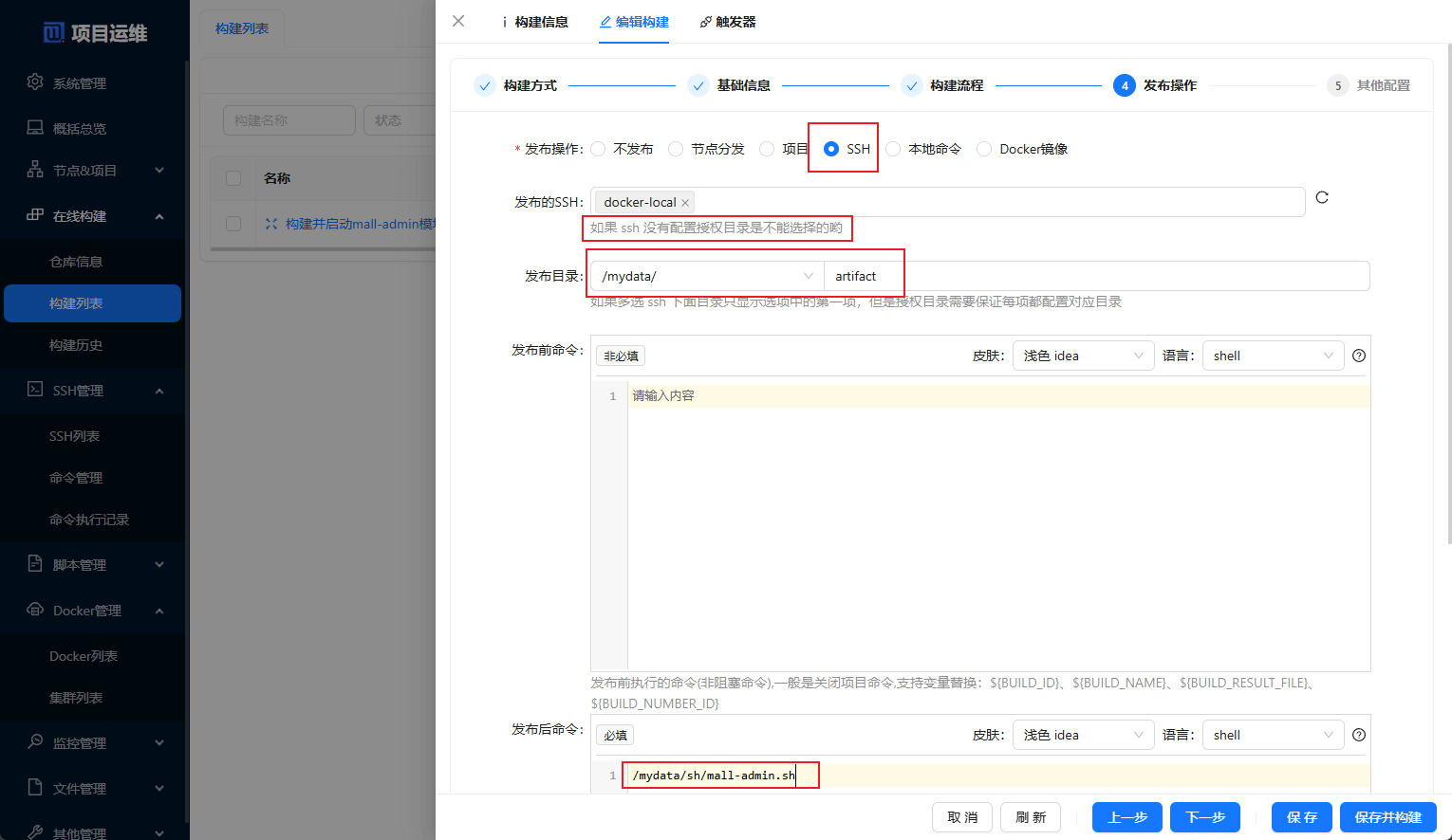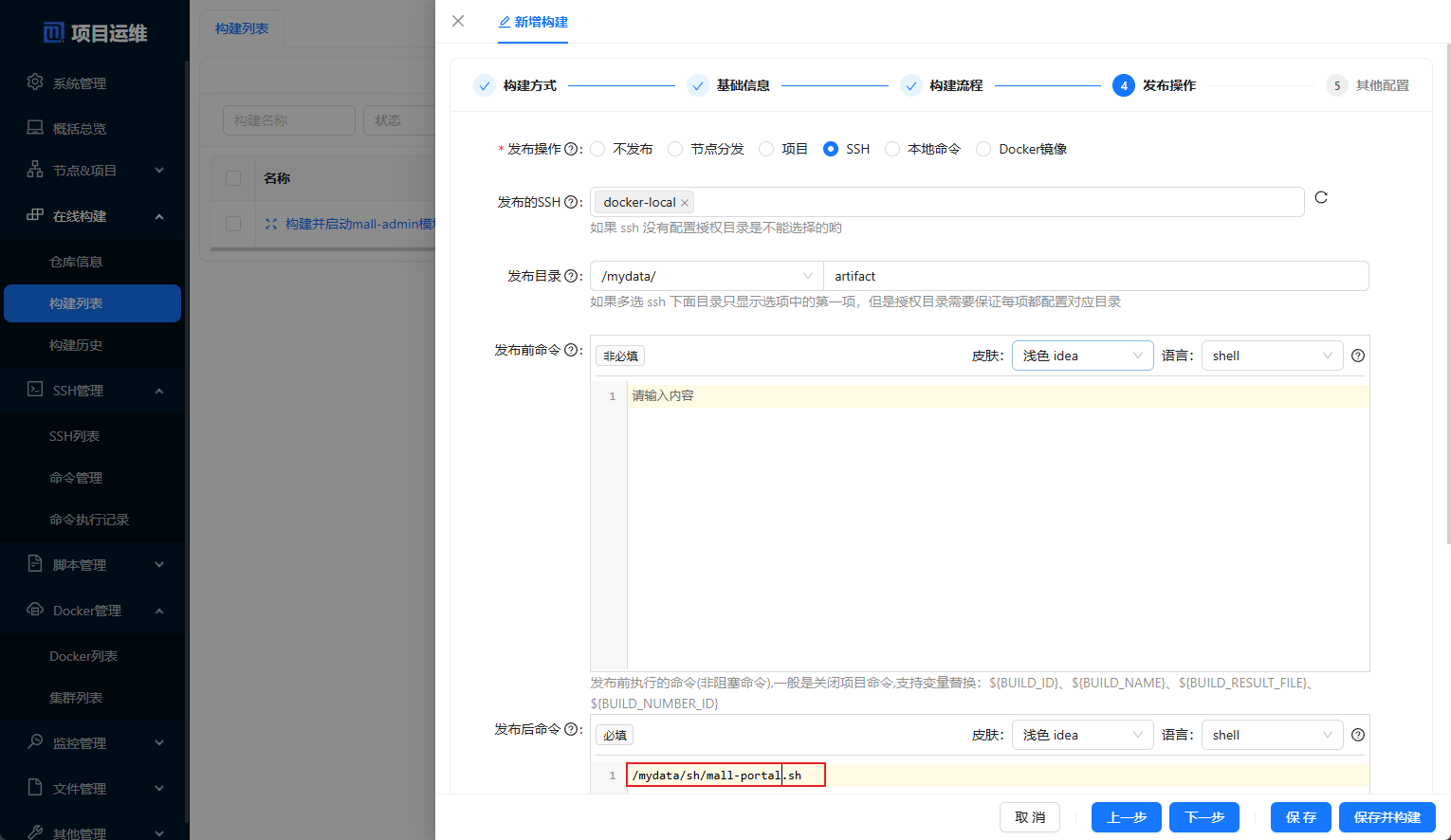发布操作中的发布后命令即可,mall-search模块的构建配置也一样;
