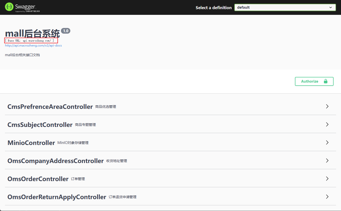 - 之后就能正常访问到mall项目后端API服务了,访问地址:http://api.macrozheng.com/swagger-ui/