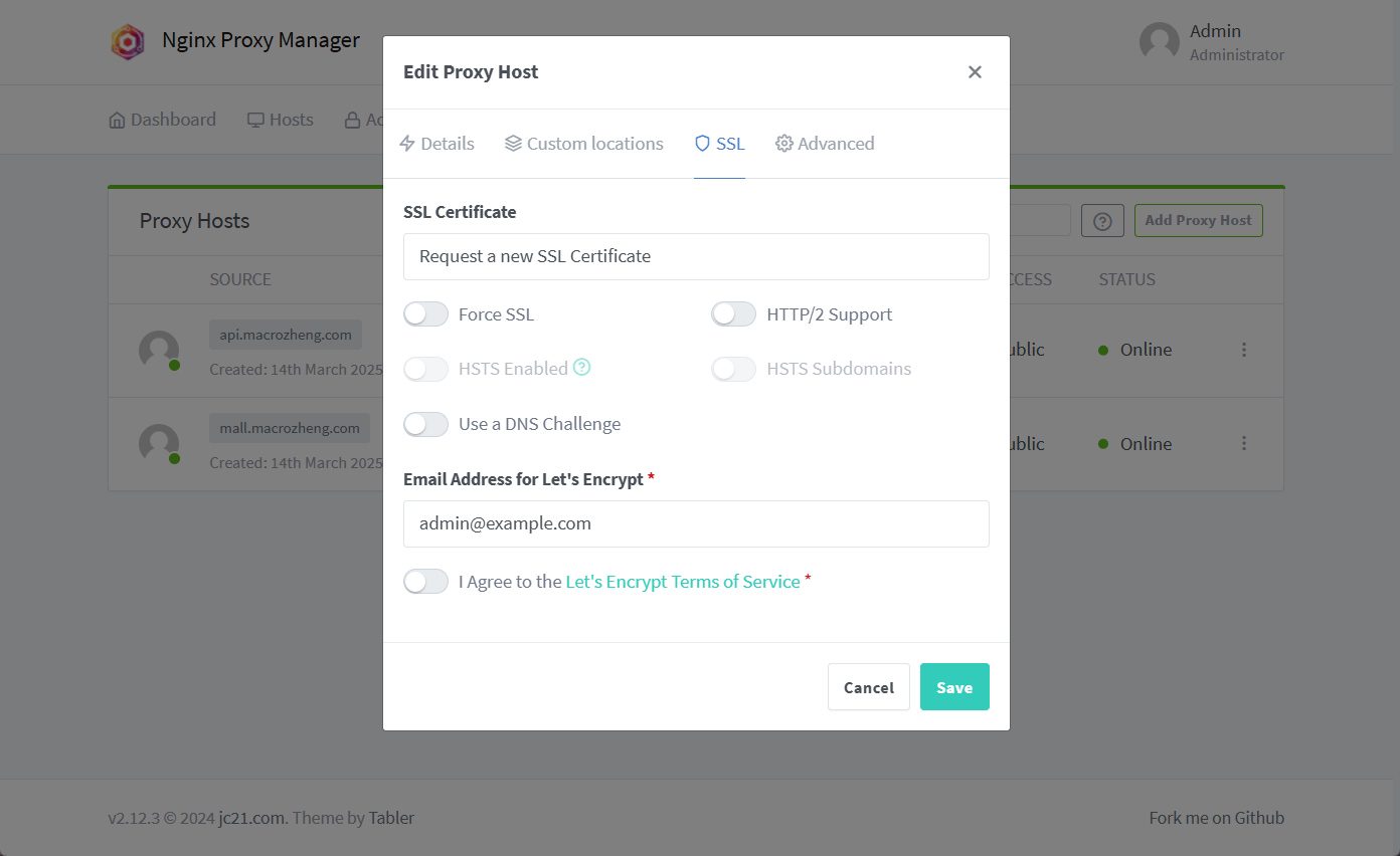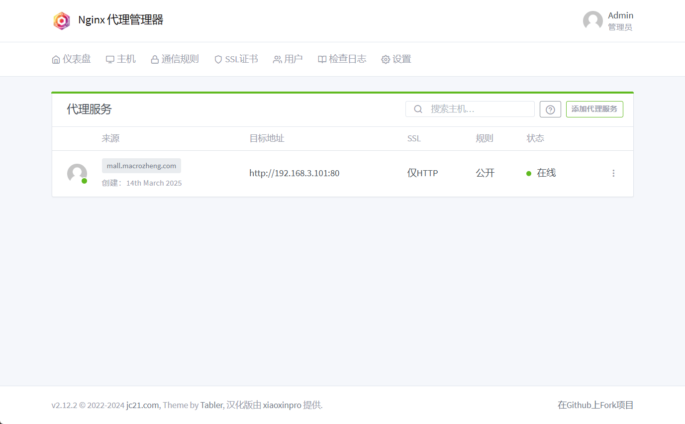 nginx-proxy-manager是一款Nginx可视化管理工具,具有强大的用户界面,目前在Github上已有25k+star。 使用它你无需深入了解Nginx,即可实现请求代理、自动申请SSL证书等功能。