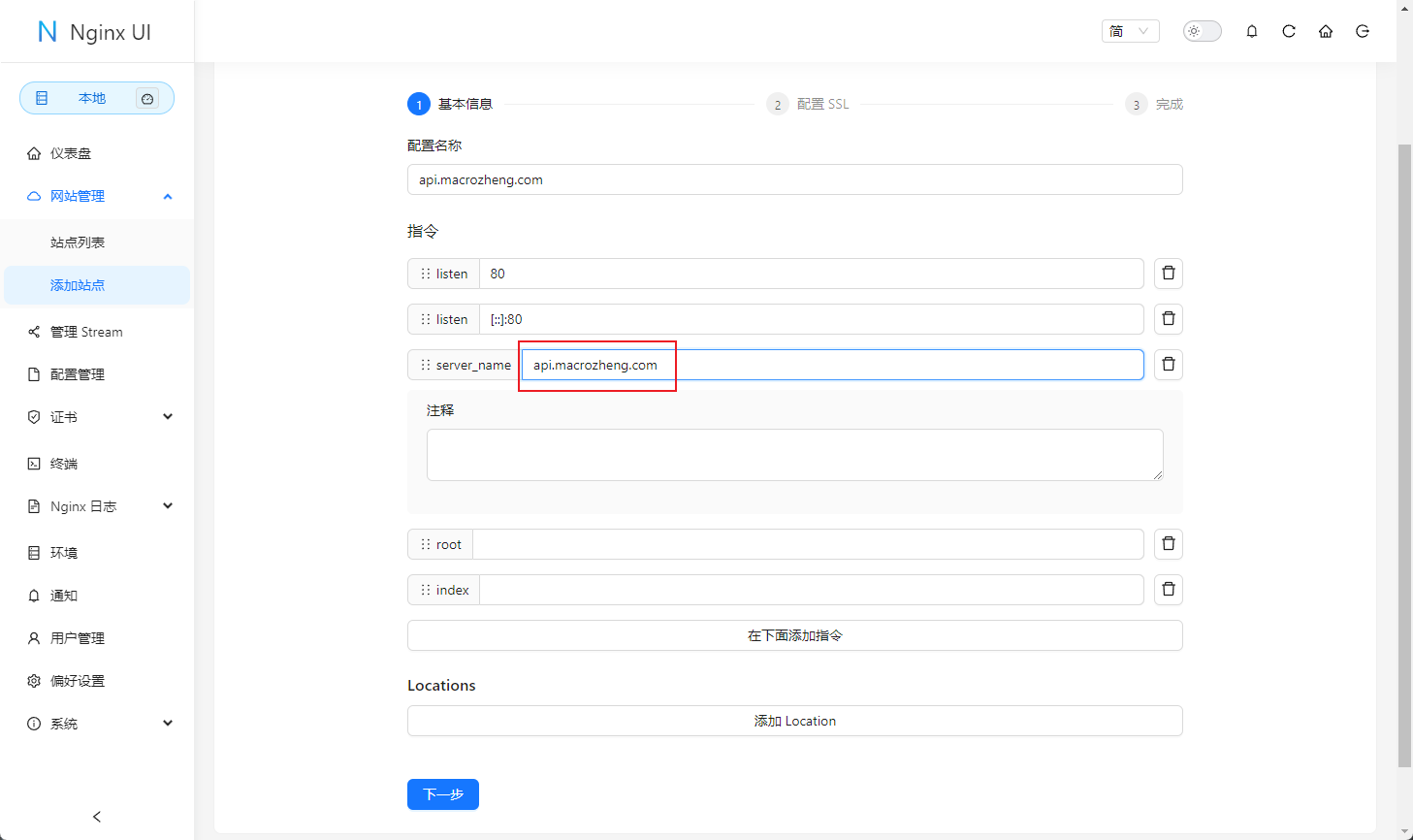 192.168.3.101 api.macrozheng.com- 然后再添加一个站点;