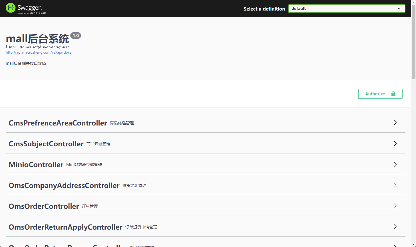 - 之后就能正常访问到mall项目后端API服务了,访问地址:http://api.macrozheng.com/swagger-ui/