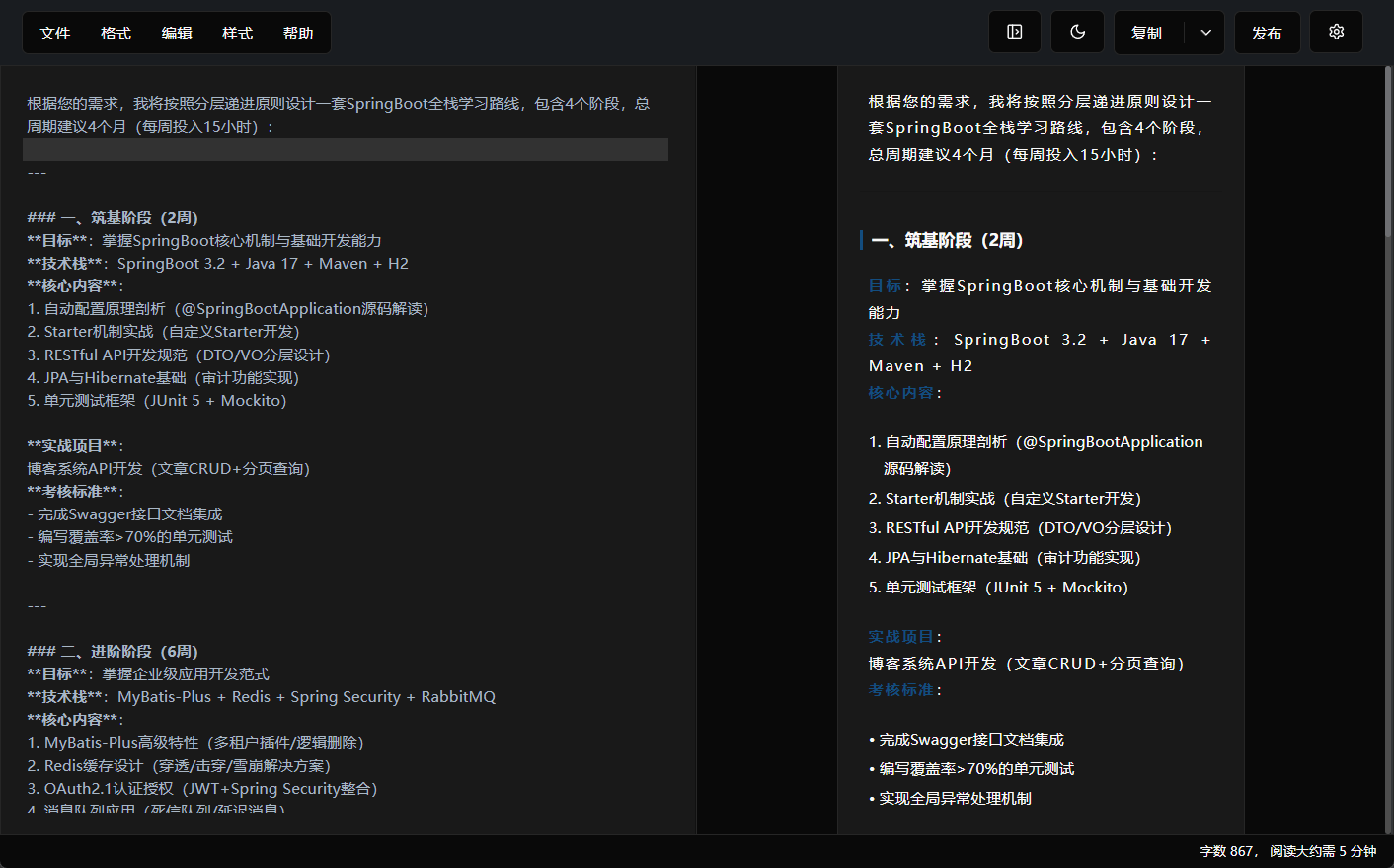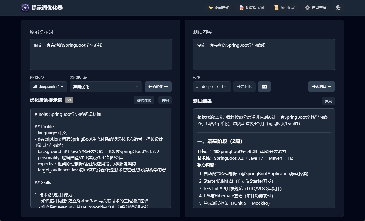 制定一套完整的SpringBoot学习路线就可以获取到优化后的提示词了;