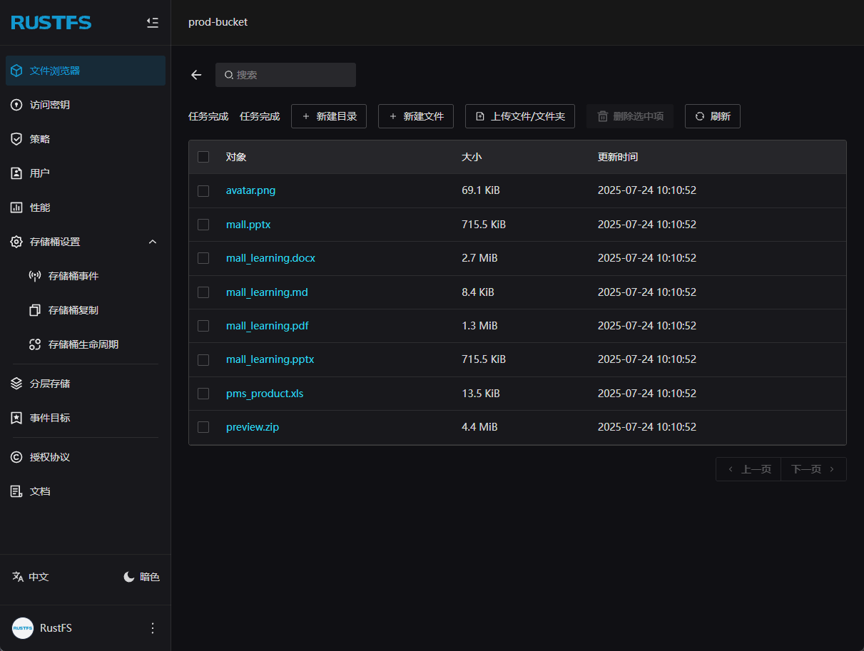 下面是RustFS使用过程中的效果图,功能还是很强大的!