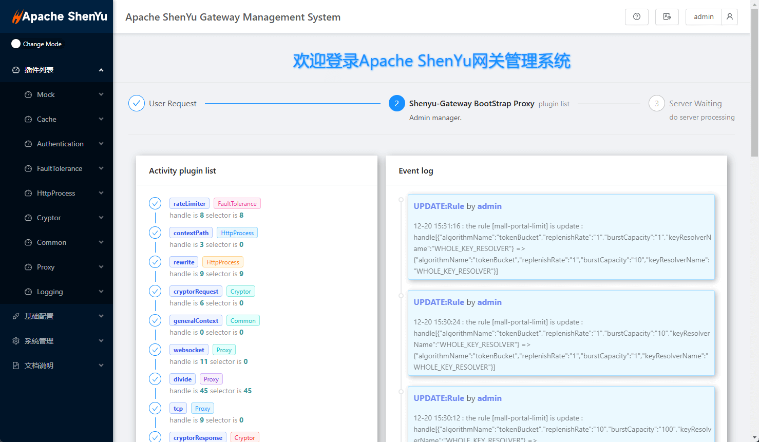 - 可视化管理:支持动态流量控制,权限管理、插件管理等功能