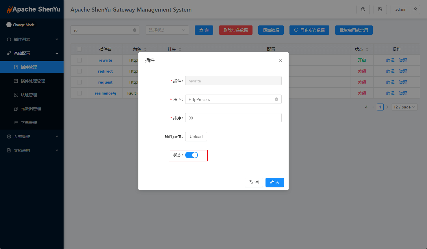 Rewrite插件,我们需要先在基础配置->插件管理中启用该插件;