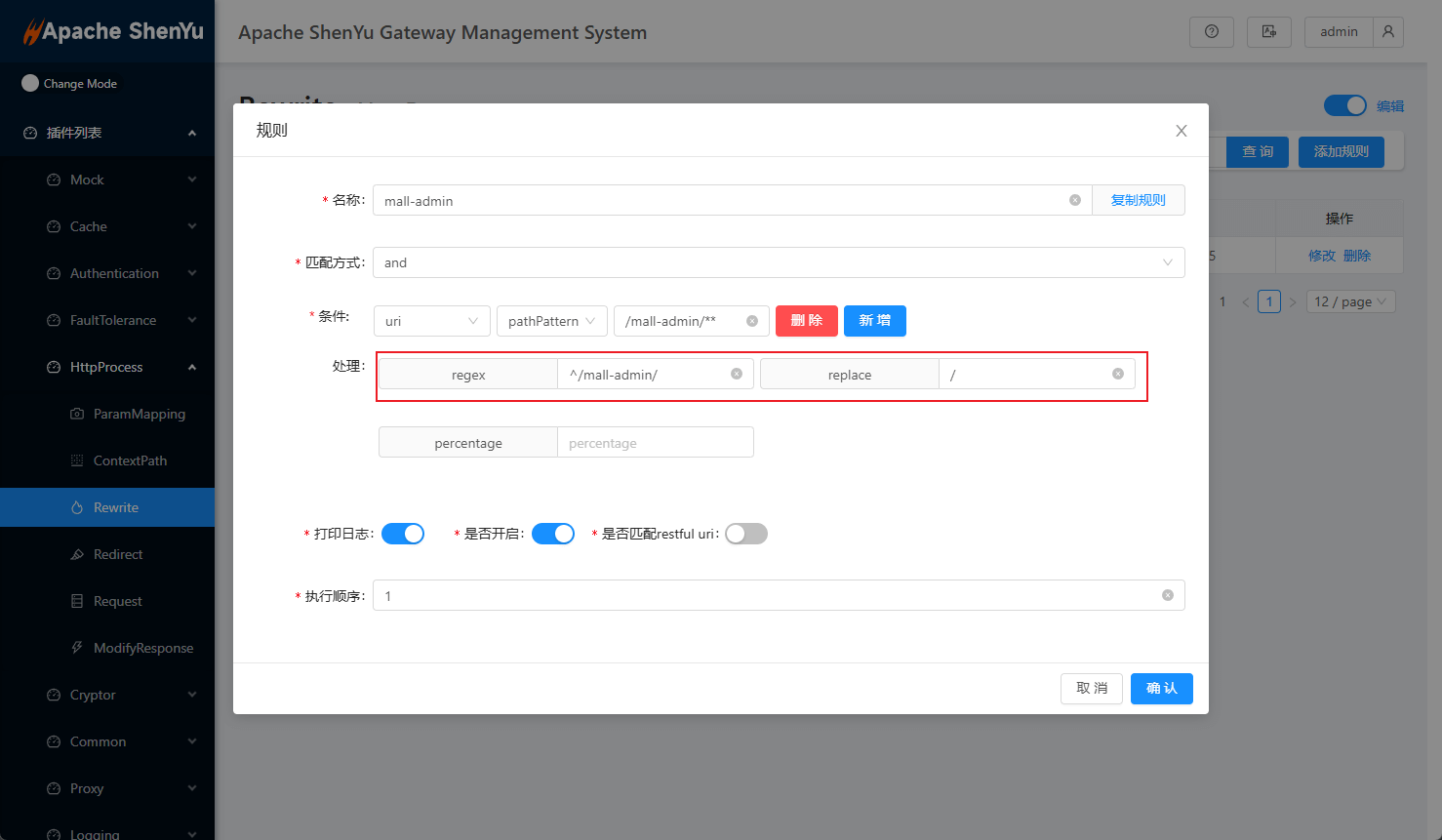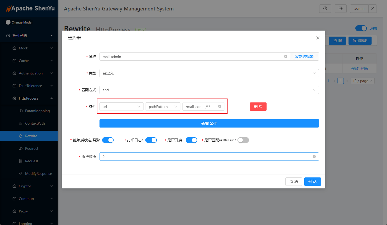 插件列表->HttpProcess->Rewrite中添加选择器;
