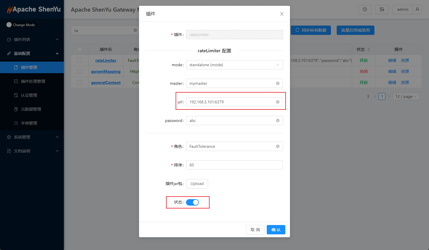 基础管理->插件管理中启用该功能,RateLimiter的使用需要依赖Redis,请先运行好Redis服务;