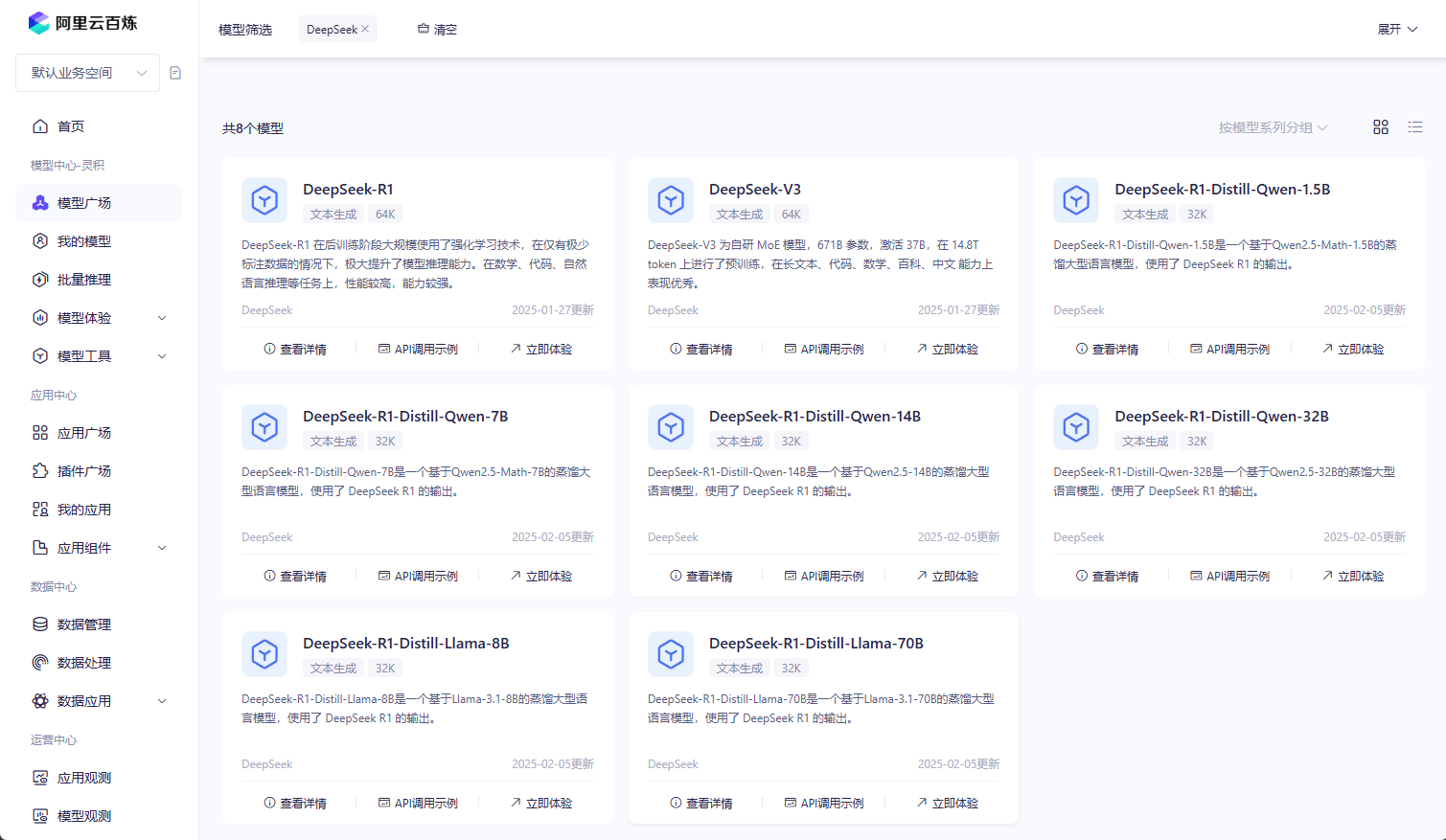 - 首先我们需要去阿里云百炼找到DeepSeek这个模型,地址:https://bailian.console.aliyun.com