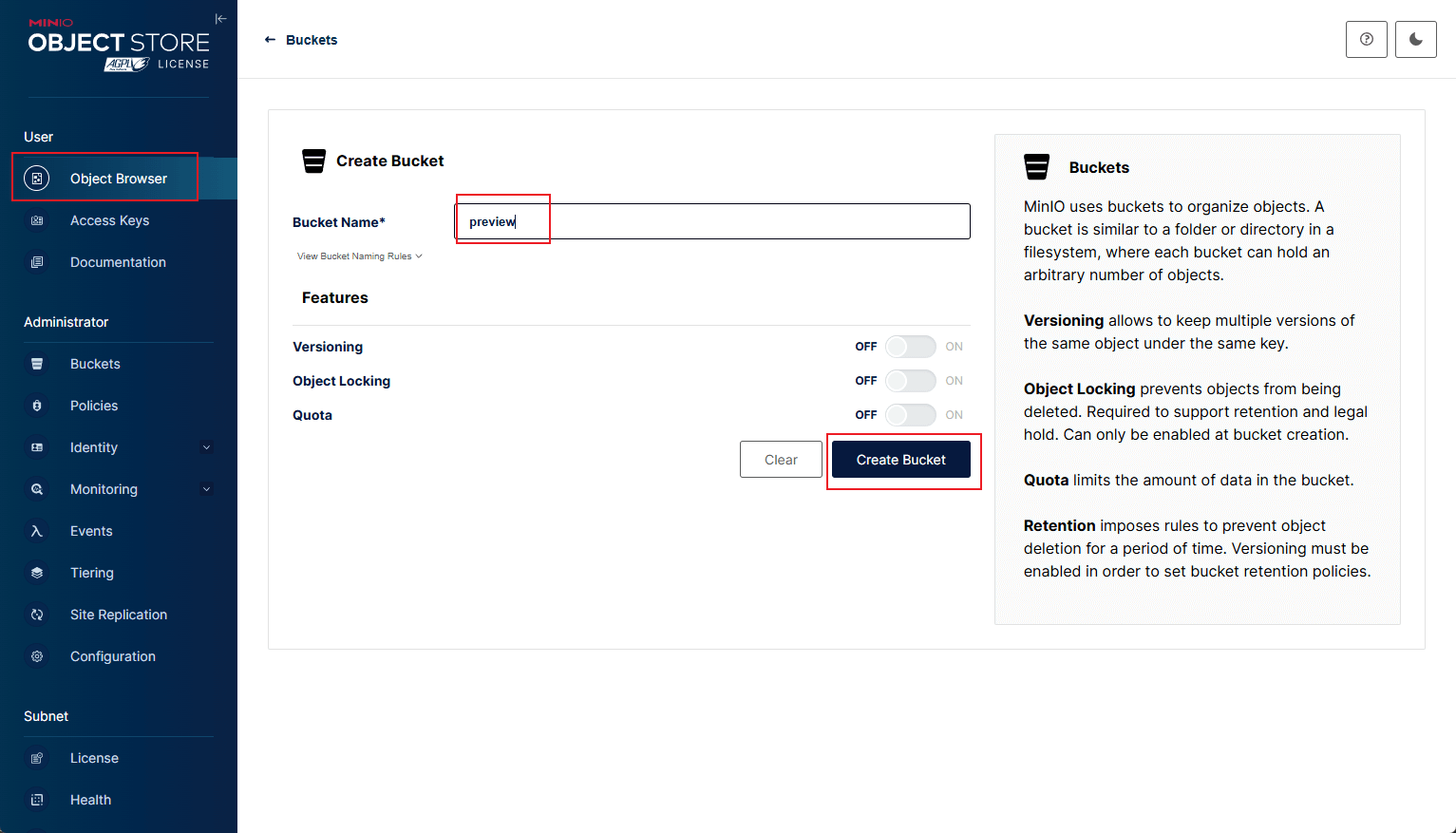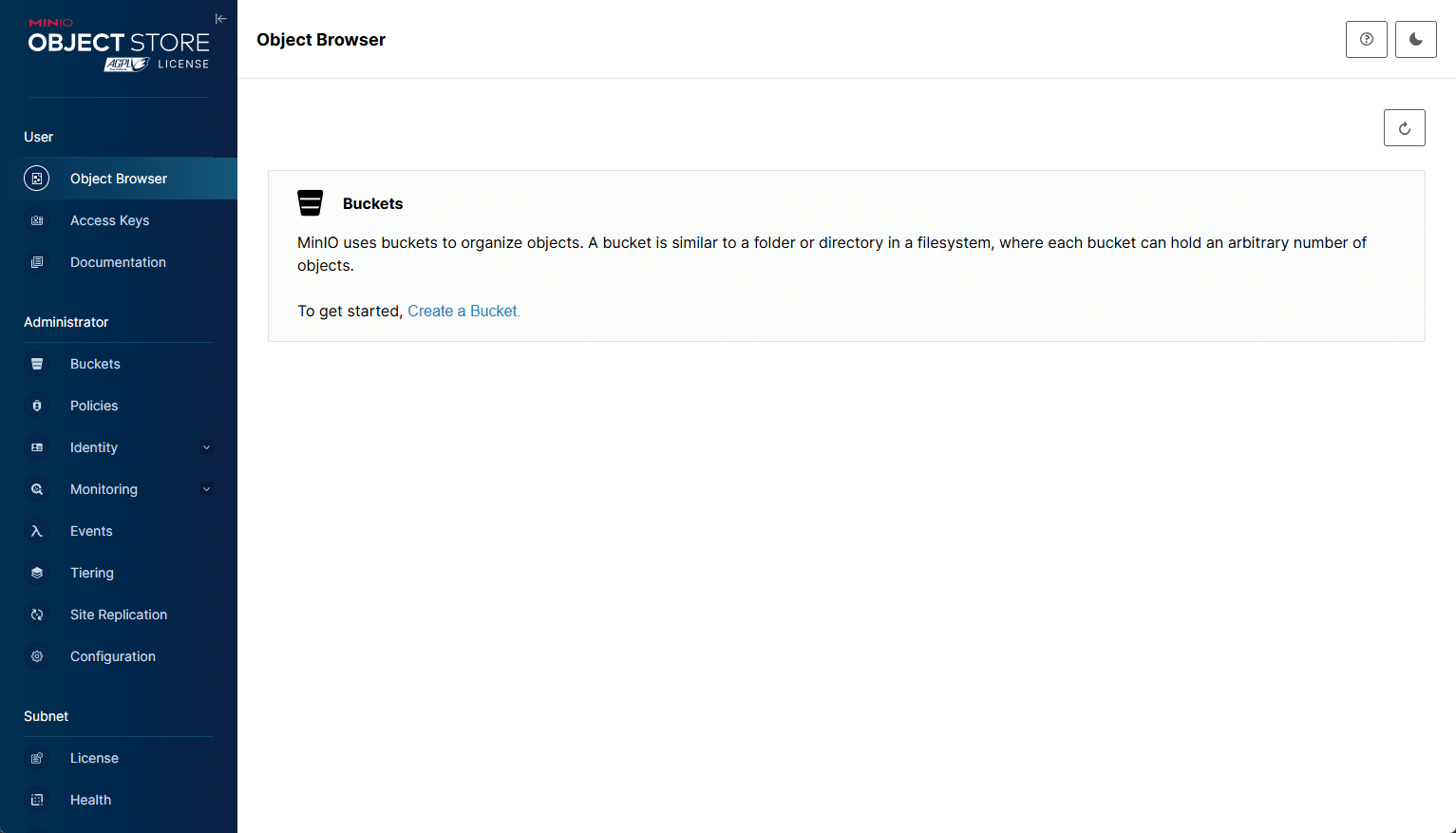 minioadmin:minioadmin就可以访问MinIO的控制台了,控制台访问地址:http://192.168.3.101:9001