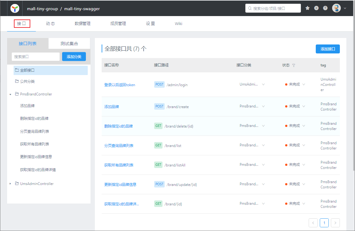 - 至此Swagger中的API接口已成功导入到YApi,点击