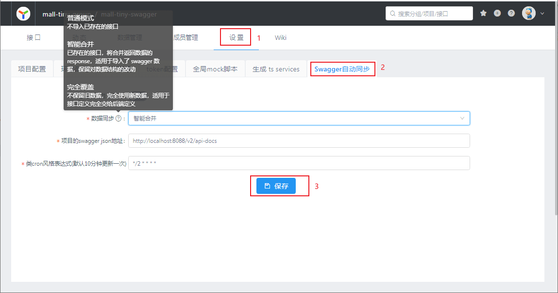 设置->Swagger自动同步来开启自动同步功能,有三种数据同步模式可以选择;