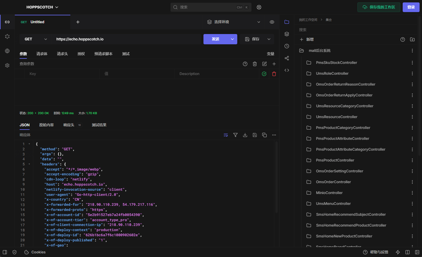 接下来我们将通过Hoppscotch来调试下电商实战项目mall中的接口,这里还是简单介绍下mall项目吧,mall项目是一套基于 SpringBoot3 + Vue 的电商系统(Github标星60K),后端支持多模块和 2024最新微服务架构 ,采用Docker和K8S部署。包括前台商城项目和后台管理系统,能支持完整的订单流程!涵盖商品、订单、购物车、权限、优惠券、会员、支付等功能!