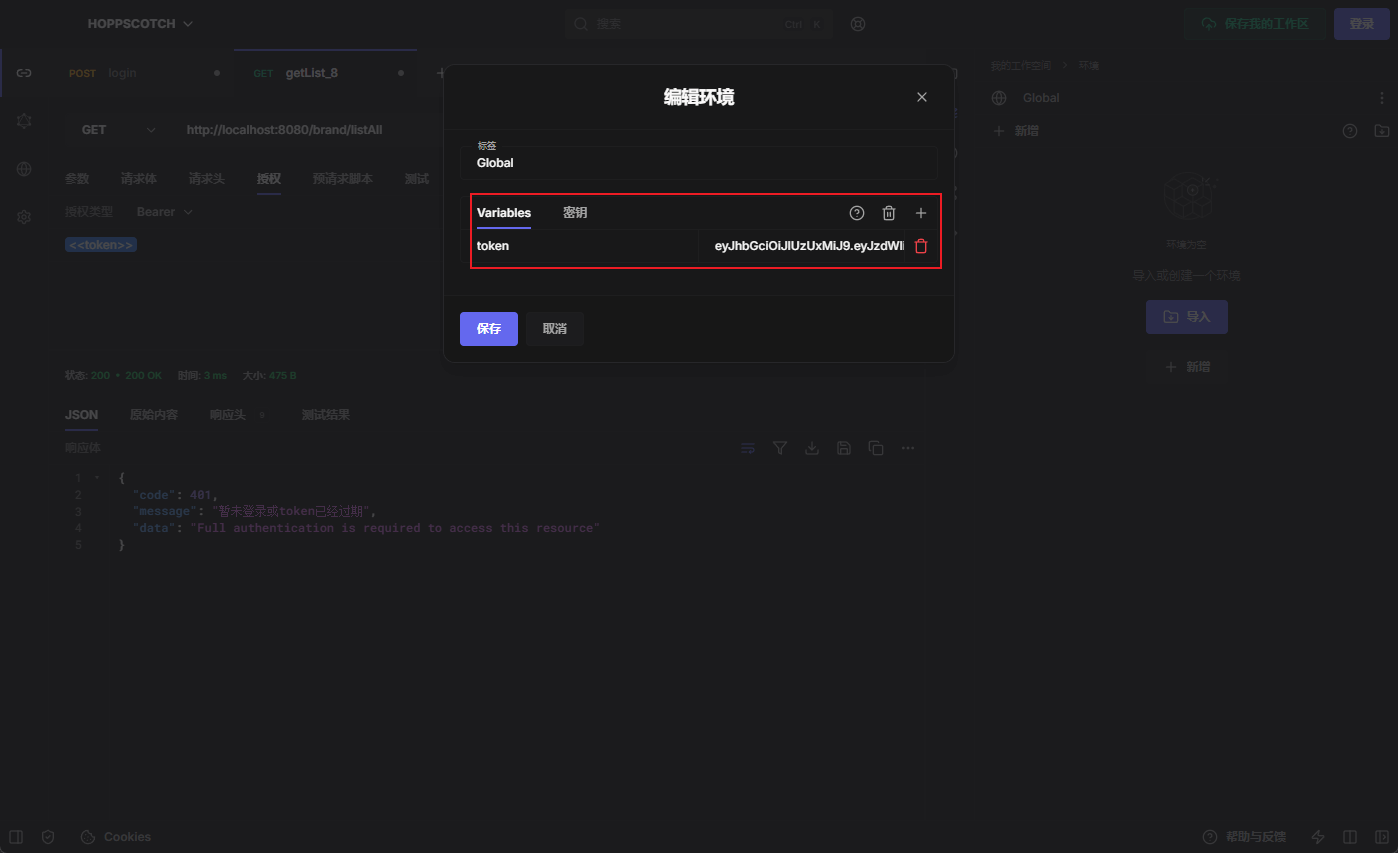 - 此时我们在环境变量里添加一个token的变量;