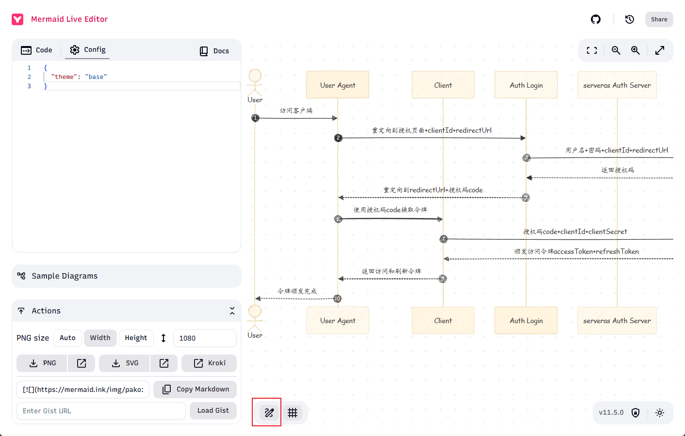 userAgent-->>user:令牌颁发完成- 之后Mermaid Live Editor就会为我们生成对应的时序图了;