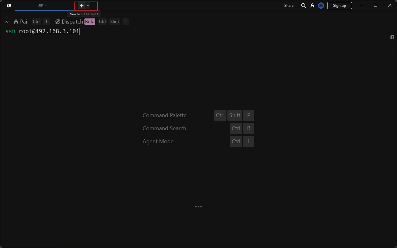 - 首先我们可以通过顶部的加号来添加一个tab,然后通过ssh命令去连接远程的Linux服务器;