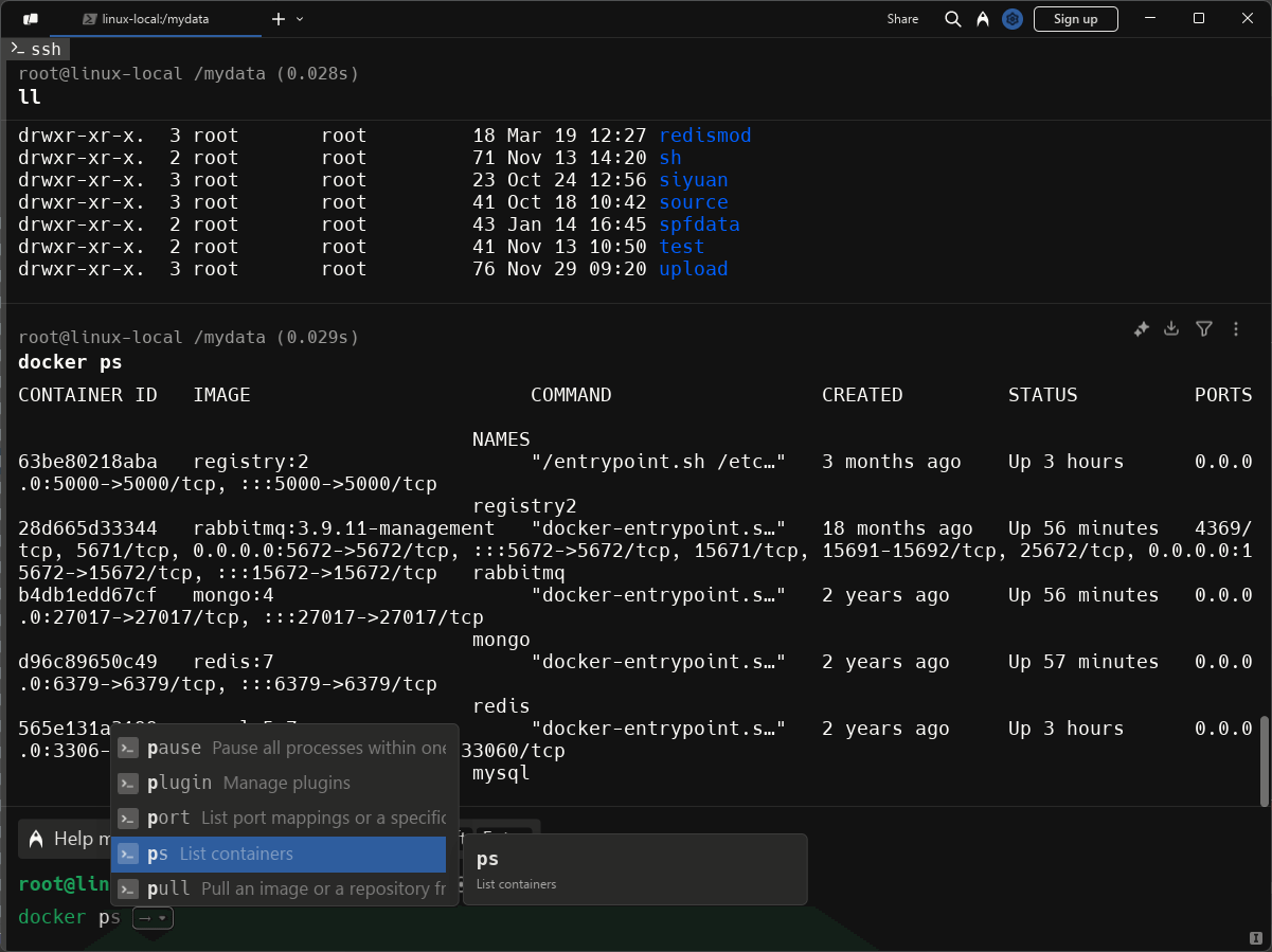 - 提示全面:当你输入命令时,Warp会通过命令历史记录和可能的命令自动进行提示;