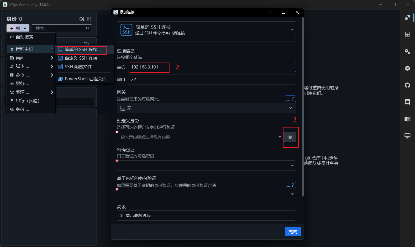 - 接下来新建一个SSH连接,输入服务器地址后,选择