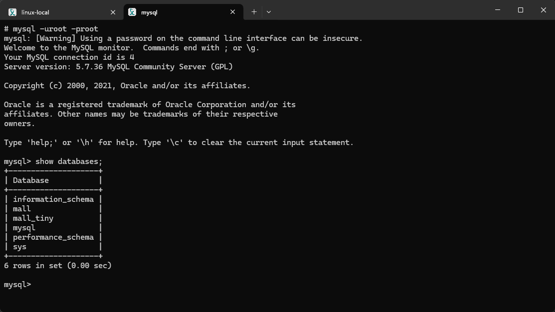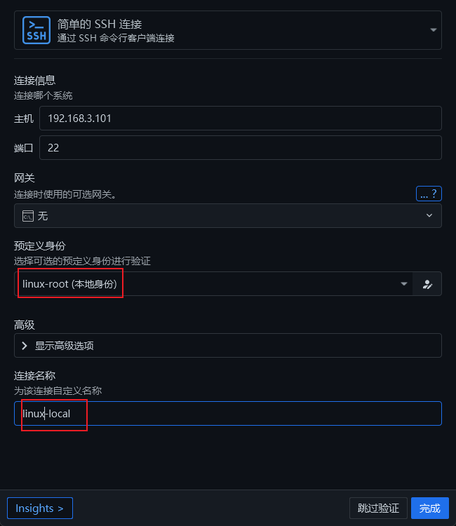 Linux-local这个连接,就可以通过本地命令行工具来管理Linux服务器了;