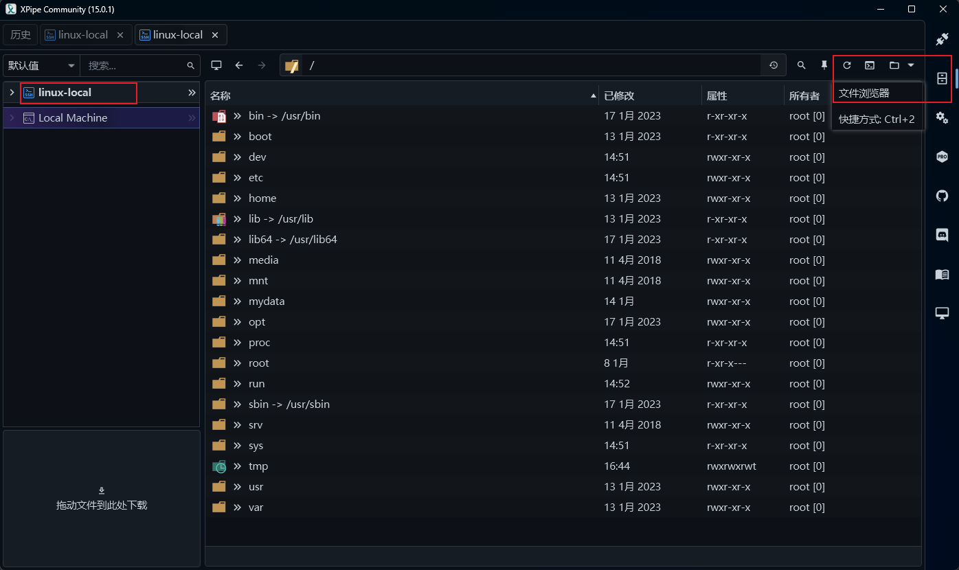 文件浏览器按钮可以直接管理远程服务器上的文件,非常方便;